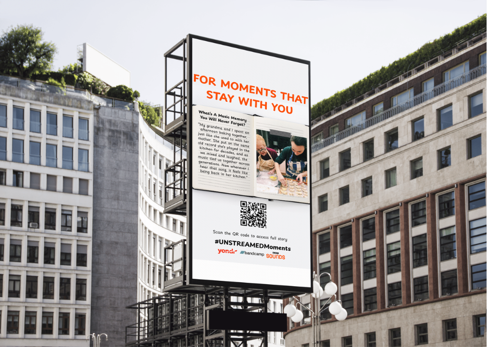 These live recordings will be broadcasted onto mega-screens in strategic hubs in London to positioning UNSTREAMED as part of a larger cultural conversation.